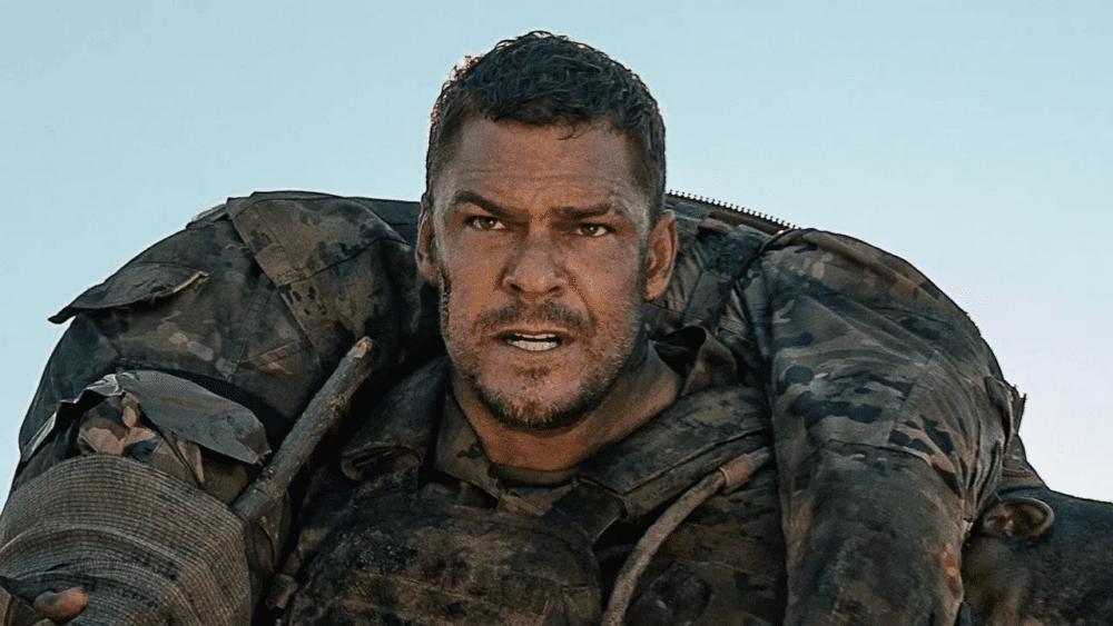 A partir daí, o filme entra de vez no terreno da ficção científica, sem abandonar a pegada militar. A narrativa acompanha a tentativa de sobrevivência do grupo, enquanto o personagem de Ritchson assume um papel central ao buscar uma forma de enfrentar o inimigo, mesmo em condições totalmente desfavoráveis.